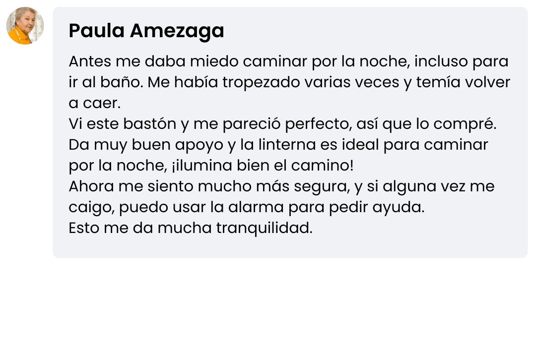 Ya sea una visita nocturna al baño o un paseo al atardecer, TeraApoyo reduce el riesgo de tropiezos y caídas al ofrecerte una luz brillante y directa que guía tus pasos. Gana tranquilidad e independencia incluso en condiciones de poca luz.