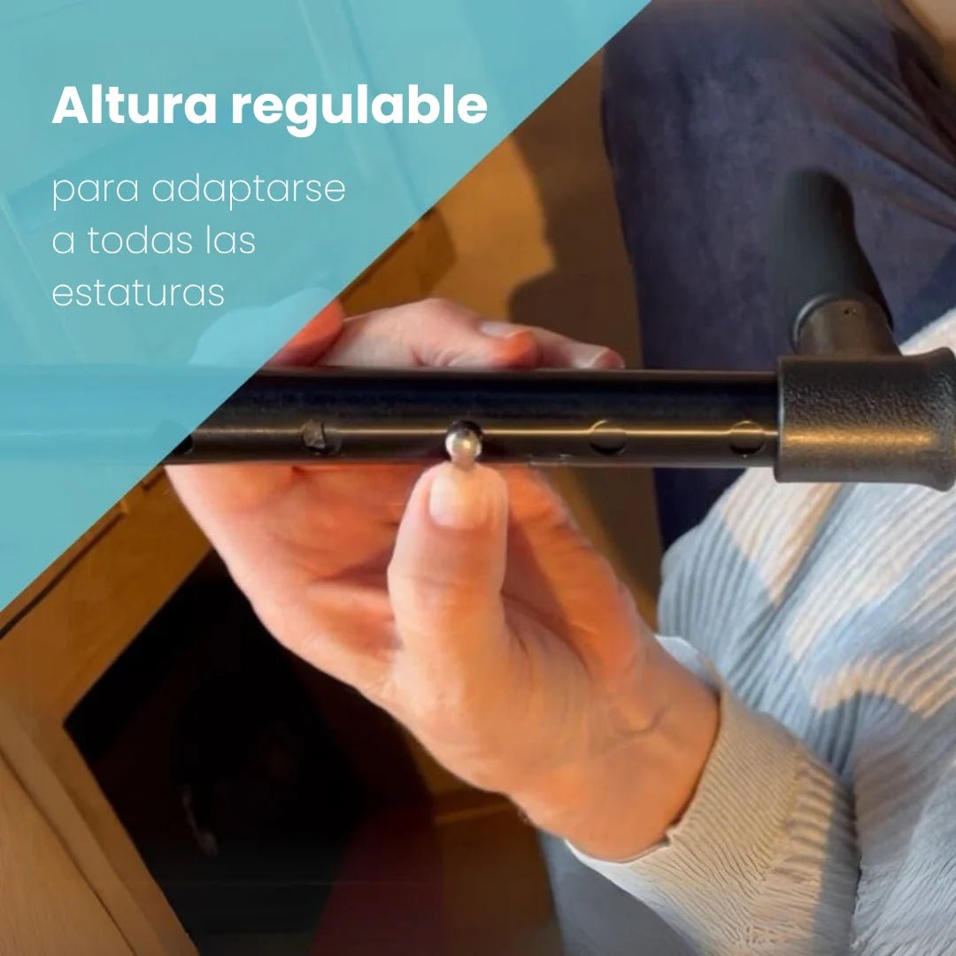 El bastón TeraApoyo se ajusta fácilmente entre 88 cm y 98 cm para adaptarse a tu estatura.